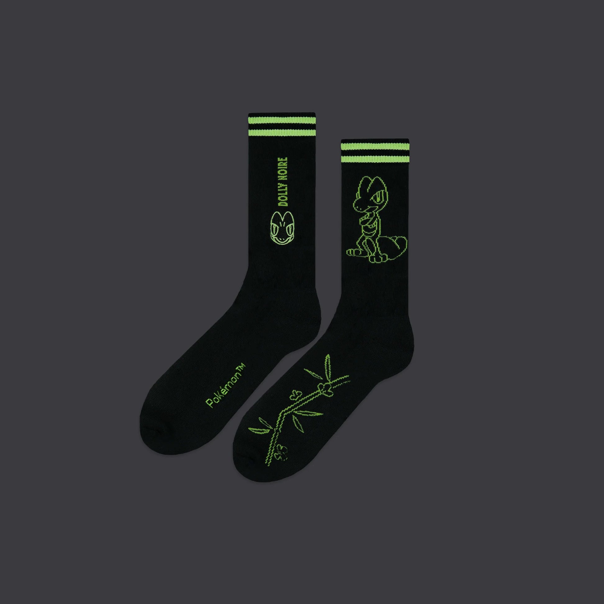 Fresche come una brezza nella foresta 🌿 le Treecko Socks della capsule Dolly Noire x Pokémon rendono omaggio allo starter di tipo Erba, simbolo di equilibrio e determinazione. Il ricamo laterale e il design jacquard curato nei dettagli raccontano la natura selvaggia e lo spirito agile di Treecko, con il comfort che solo Dolly Noire sa offrire.