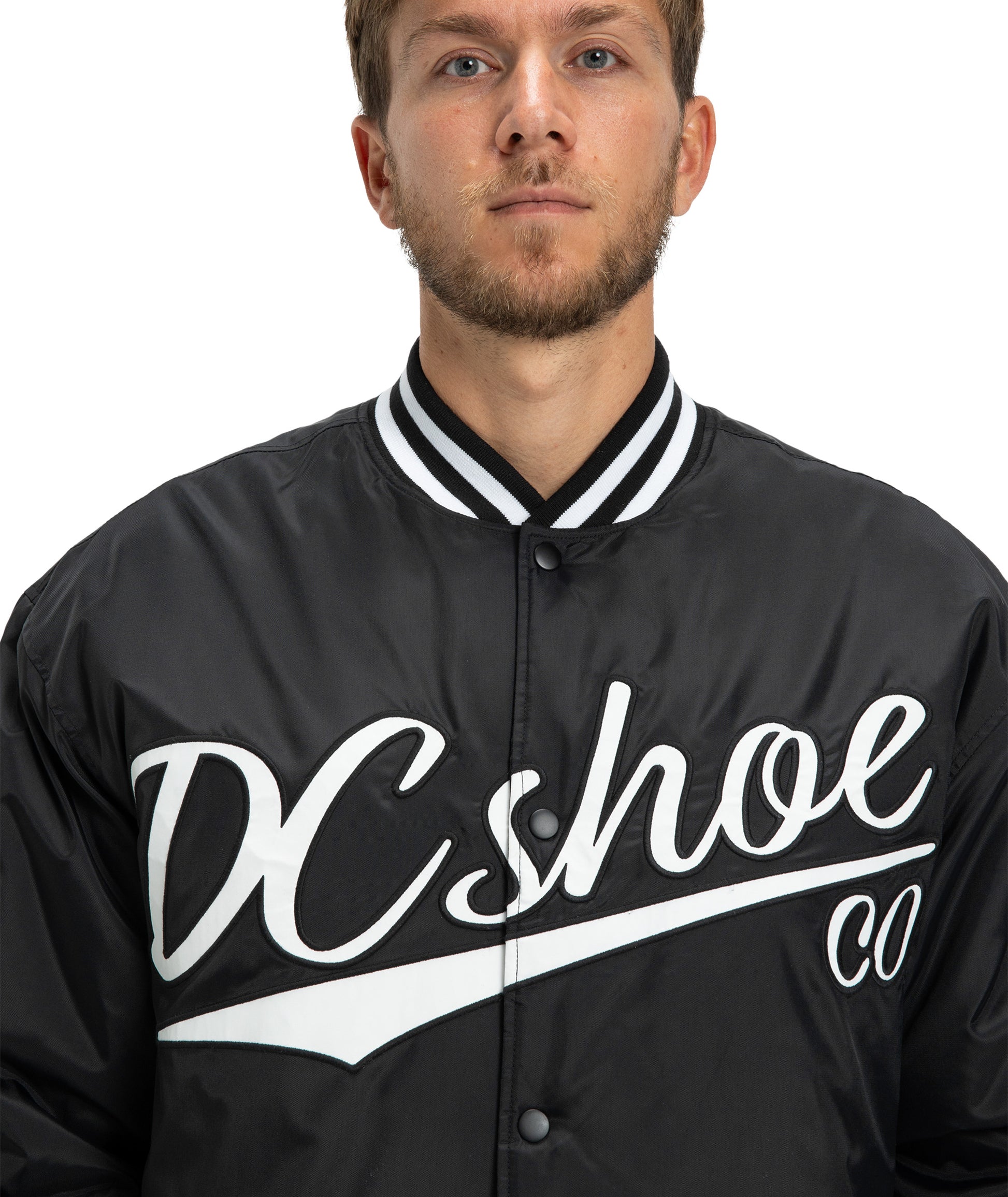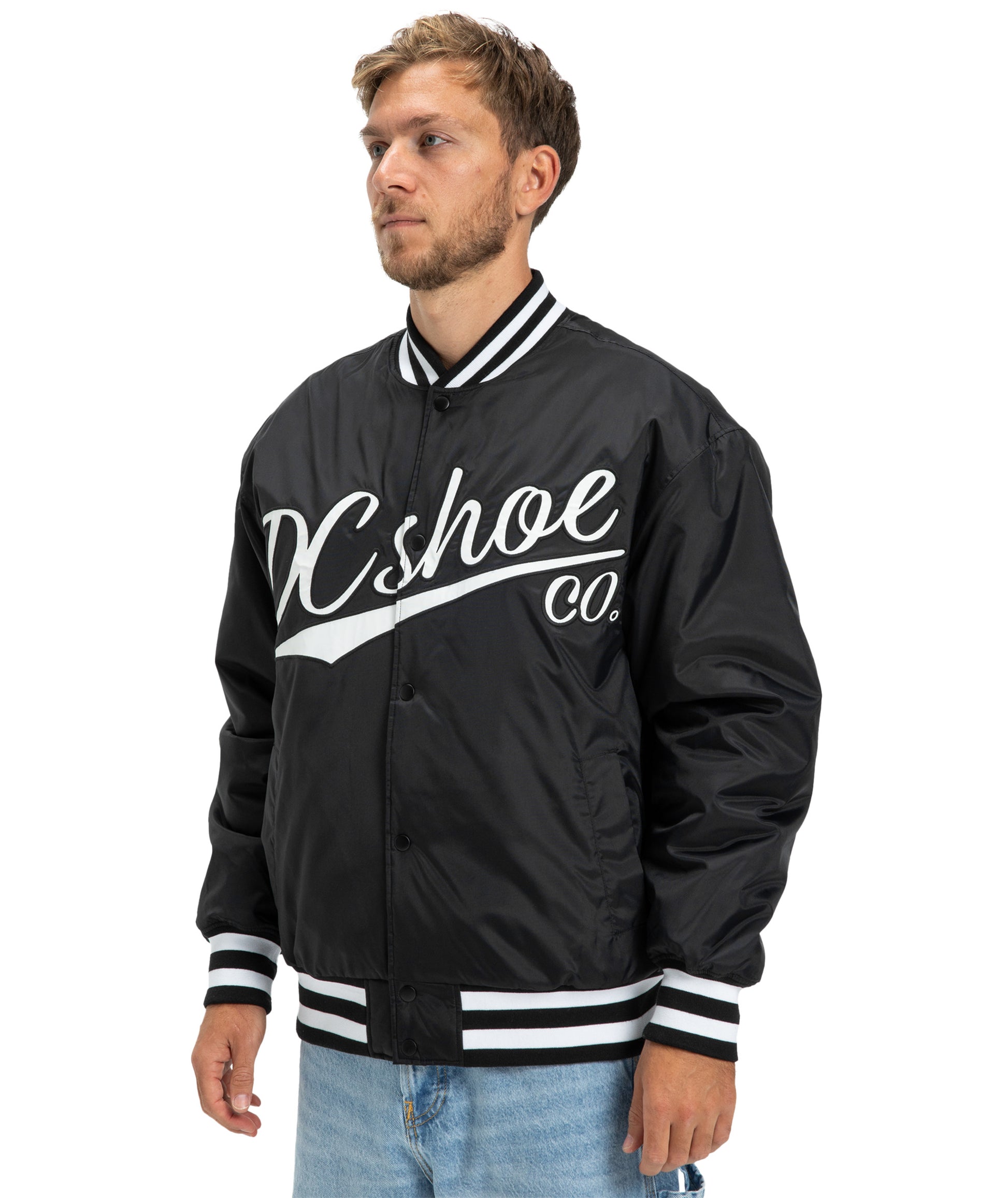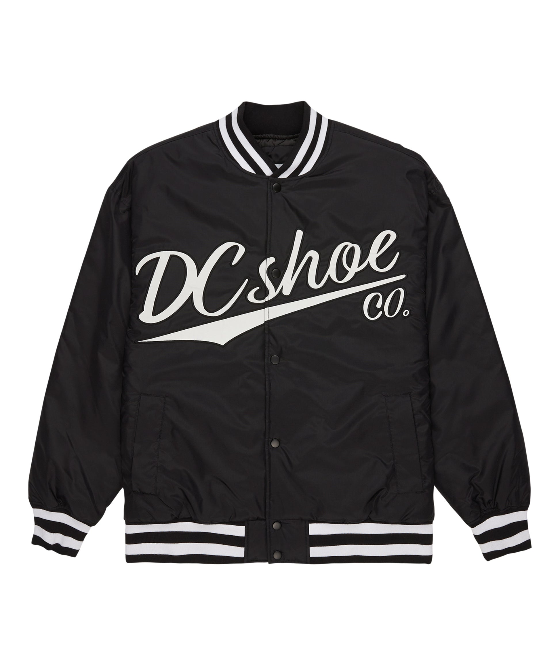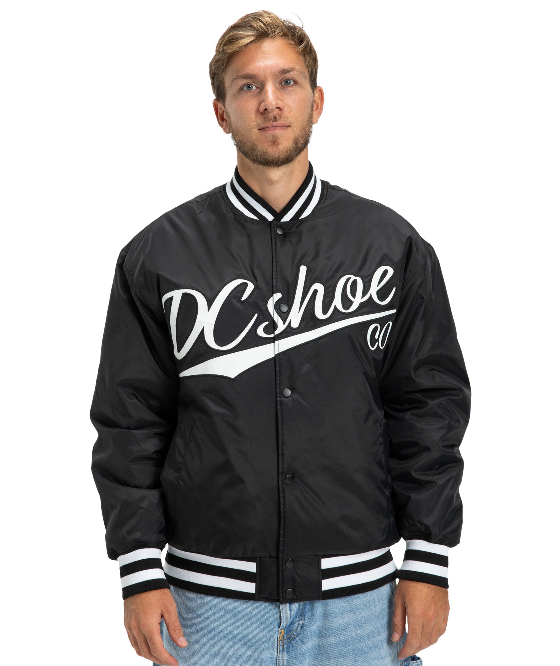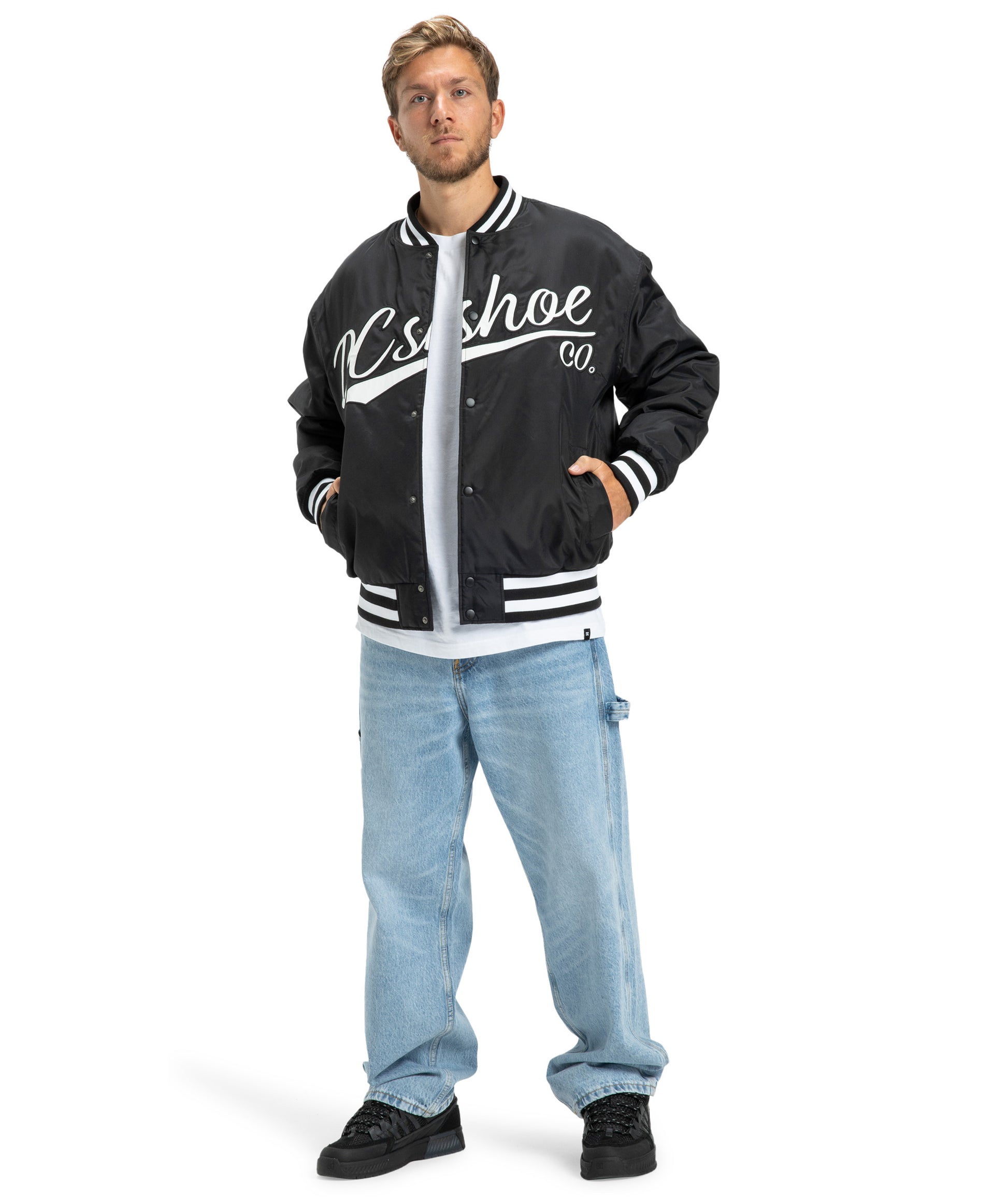 La DC Substitute Bomber riprende lo stile classico delle varsity jacket e lo porta nel mondo skate. Realizzata in 100% nylon riciclato, offre protezione leggera e comfort, perfetta per la mezza stagione o per stratificare. La chiusura a scatto e il colletto a coste richiamano l’heritage DC, mentre il taglio pulito la rende ideale in città o in park. 🌆🛹